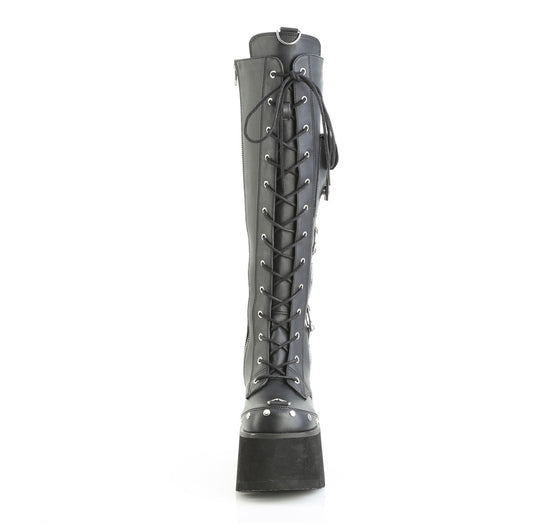 4 1/2" Platform Lace-Up Knee High Boot, Inside Zip (Demonia BLAZE152/BVL)