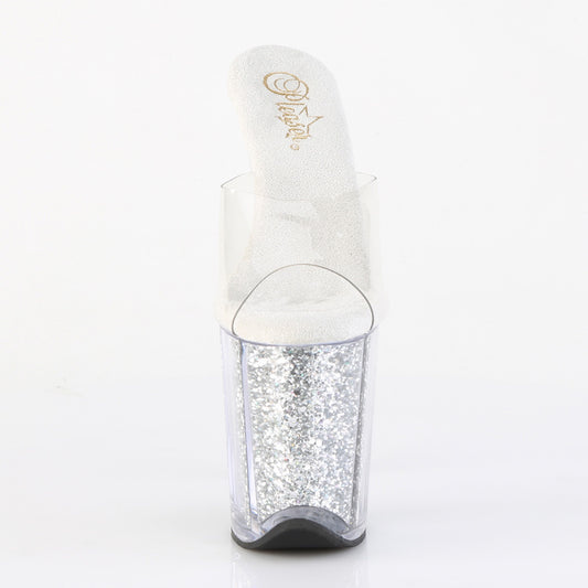 8" Heel, 4" PF Slide w/Glitter-filled Bottom (Pleaser FLAM801G/C/SG)