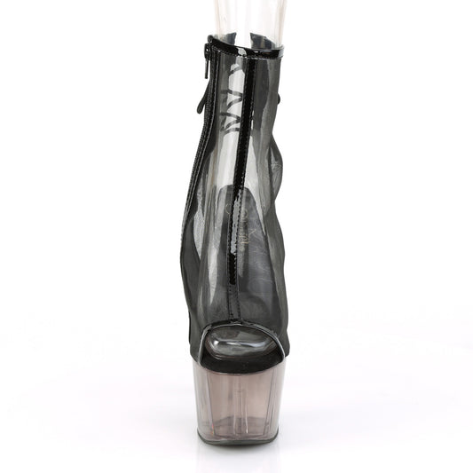 **7" Heel, 2 3/4" Tinted PF Open Toe Ankle Boot, Side Zip (Pleaser ADO1018MSHT/B-MS/SMK)